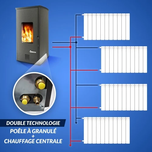 Par rapport aux modèles de poêle à granulés traditionnels, le Poêle-Chaudière à Granulés vous apporte une chaleur parfaitement répartie dans toute la maison. Il peut, grâce à son raccordement spécialement conçu pour les chauffe-eaux, devenir un chauffage central complet, autonome et écologique. Le faible taux de CO2 rejeté dans l’atmosphère fait de lui un appareil respectueux de l’environnement et parfaitement économie.